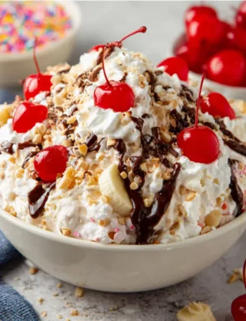 Indulge in a delightful Banana Split Fluff Salad, a sweet and refreshing dessert in disguise. Easy to make with fresh fruits and low-fat ingredients.